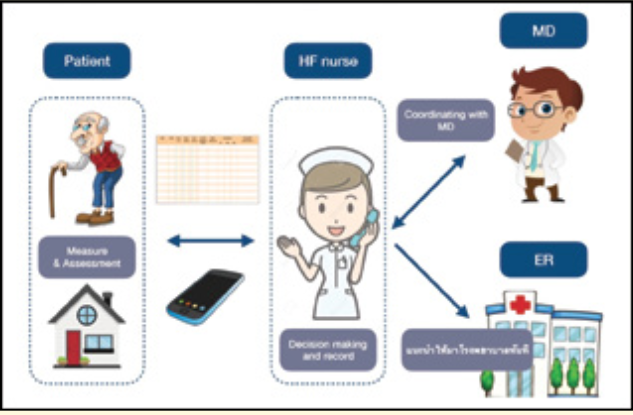 เนื่องจากผู้ป่วยหัวใจล้มเหลวต้องการการดูแลและติดตามผลเป็นพิเศษ คลินิกผู้ป่วยหัวใจล้มเหลว โรงพยาบาลจุฬาลงกรณ์ สภากาชาดไทยจึงใช้เทคโนโลยีการสื่อสารที่เข้าถึงง่ายและรวดเร็ว ตลอดจนความใส่ใจของบุคลากรทางการแพทย์ที่คอยติดตามอาการ ตอบข้อสงสัย ดูแลทางไกล ทำงานร่วมกับผู้ป่วย และญาติเมื่อผู้ป่วยกลับบ้านเพื่อดูแลตนเอง