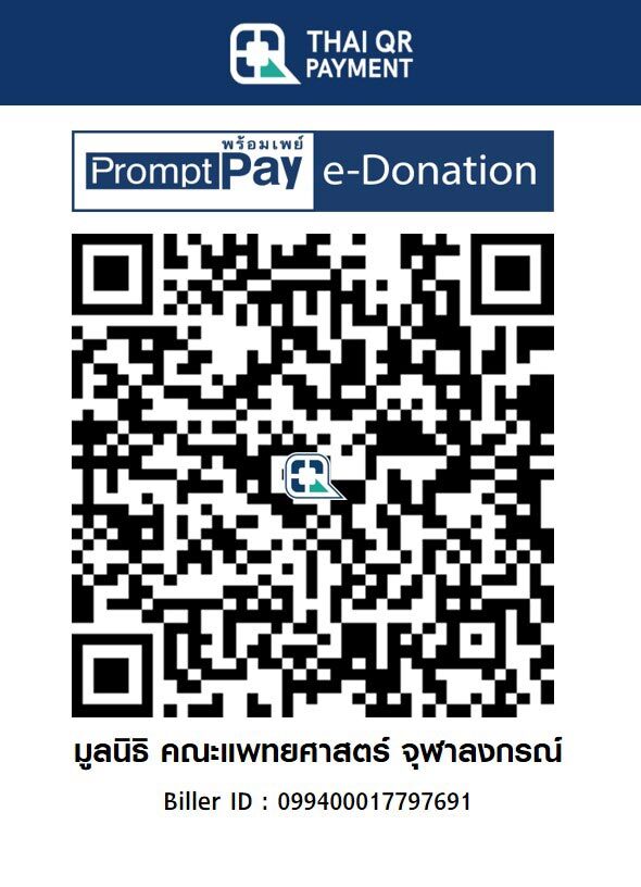 ขอเชิญร่วมบริจาคเพื่อสนับสนุนมูลนิธิคณะแพทยศาสตร์ จุฬาลงกรณ์ ผ่านระบบ e-Donation ตั้งแต่ 1 ม.ค. 2568 ถึง 31 ธ.ค. 2570 และรับสิทธิลดหย่อนภาษี 2 เท่า